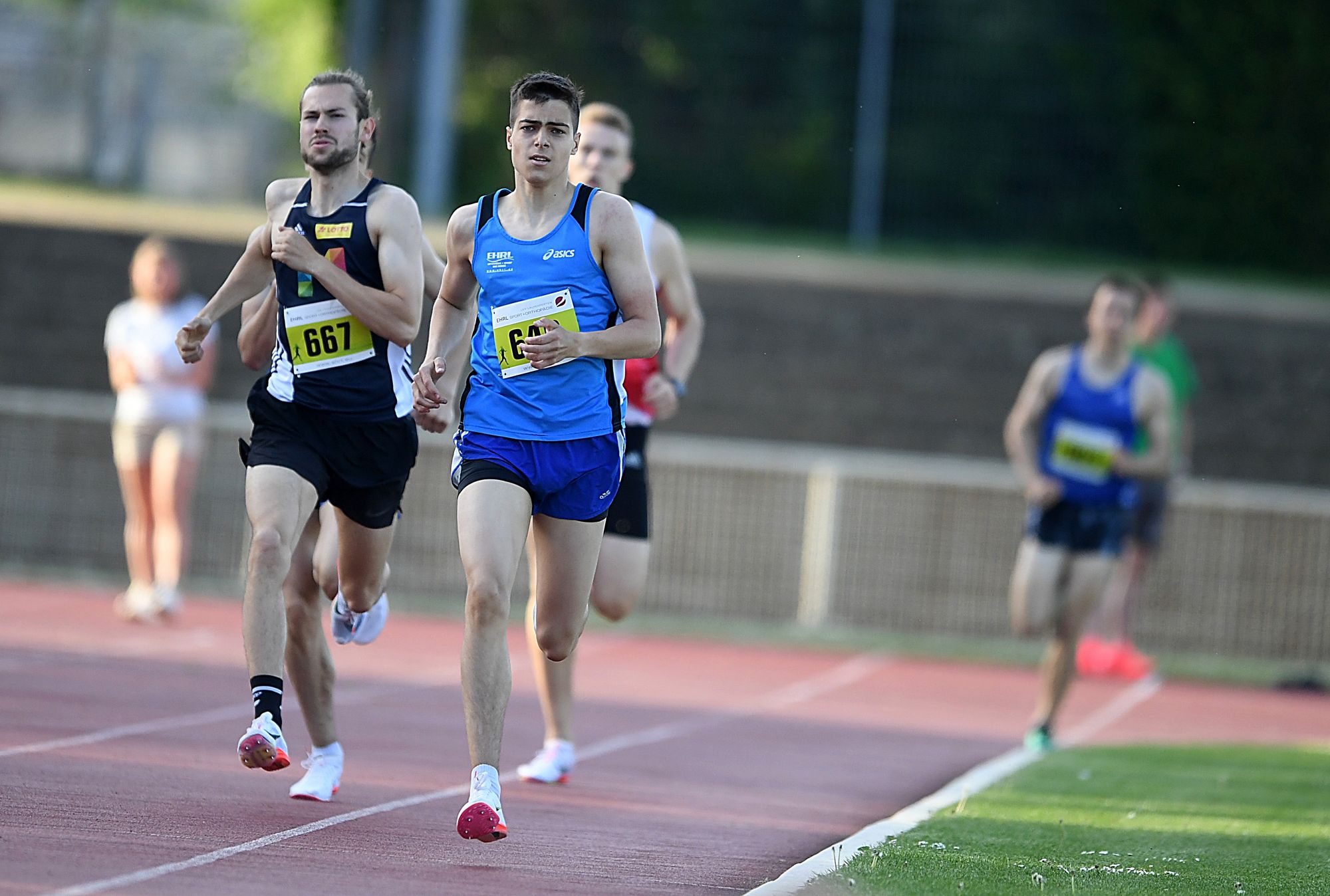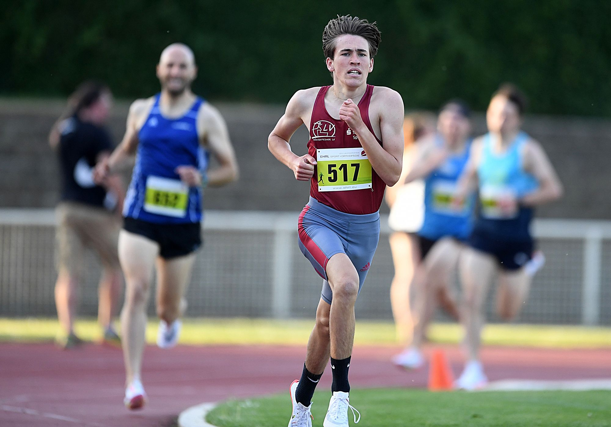 Sebastian Hauf (TV Trebur) hatte bei den Männern über die identische Distanz die Norm für die „Deutschen“ in Berlin im Blick. Das klappte leider nicht. Denn Hauf war von Anfang an beim Kampf gegen die Uhr auf sich alleine gestellt unterwegs und wurde schließlich mit 3:54,88 Minuten gestoppt. Ein richtig flottes Rennen gab es über die 800-Meter, bei dem sich der Schweizer Vincent Notz (ST Bern) mit 1:50,02 Minuten in die Siegerliste eintrug. Robin Pfahls (TV Gelnhausen) hatte als Zweiter keine Probleme, mit 1:53,21 Minuten unter der Norm für die nationalen Titelkämpfe in der U23 zu bleiben. Beim Nachwuchs der U20 zeigten die beiden Läufer an der Spitze des Feldes, dass man sie bei der „DM“ in Ulm auf der Rechnung haben muss. Lokalmatador Pierre Börkey (TV Waldstraße Wiesbaden) setzte sich in 1:50,17 Minuten knapp gegen Jan Dillemuth (TV Assenheim) durch. In der jüngeren U18 lösten die Brüder Joel und Luis Börkey (beide TV Waldstraße Wiesbaden) an der Spitze des Feldes mit 1:58,30 bzw. 1:59,00 Minuten die DM-Tickets. Louis Buschbeck (Königsteiner LV/noch U18), eigentlich auch ein 800-Meter-Spezialist, begann über 1500 Meter sein Wettkampfjahr. Gute 4:13,62 Minuten können sich allemal sehen lassen. Hier fehlten lediglich 0,42 Sekunden für einen Startplatz bei den „Deutschen“.