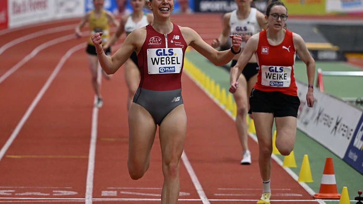 Einen der emotionalsten hessischen Momente des Wochenendes erlebte die Königsteiner LV gleich am Eröffnungsabend. Nele Weßel gewann über 3.000 Meter ihren ersten deutschen Meistertitel überhaupt und das in überzeugender Manier. Die 26-Jährige ließ sich zunächst im Pulk mitziehen, bevor sie auf der Schlussrunde ihre läuferische Stärke ausspielte und die Konkurrenz stehen ließ. Mit 9:01,35 Minuten verbesserte sie gleichzeitig ihre persönliche Bestleistung und stellte die deutsche Jahresbestleistung auf. Auf einen geplanten Start über 1.500 Meter musste Weßel im weiteren Verlauf der Meisterschaft verzichten, Wadenprobleme und der Blick auf die Hallen-WM in Torun ließen keine andere Wahl. Vereinskollegin Jana Becker durfte sich ebenfalls über eine besondere Auszeichnung freuen: Sie wurde im Rahmenprogramm der Meisterschaften als weibliche Jugend-Leichtathletin des Jahres 2025 geehrt. Und auch Jan Dillemuth trug die Königsteiner Farben im 1.500-Meter-Finale der Männer, wo er zeitweise zur Spitzengruppe gehörte, am Ende aber knapp außerhalb der Medaillenränge ins Ziel kam.