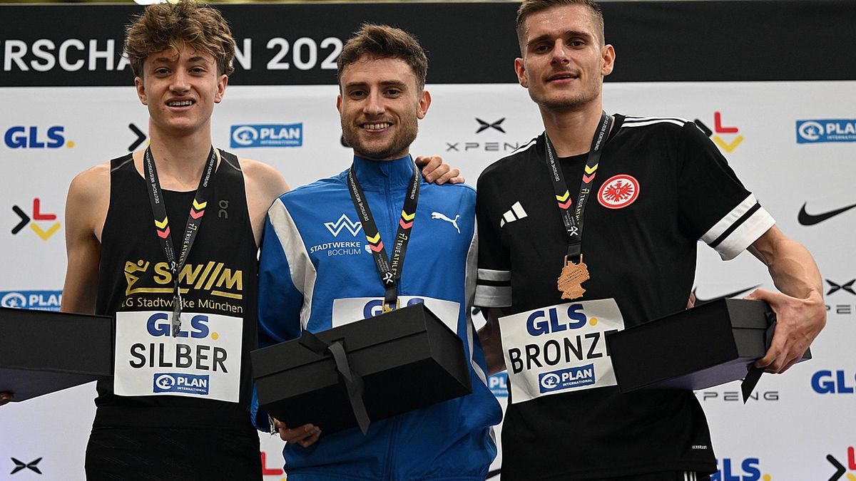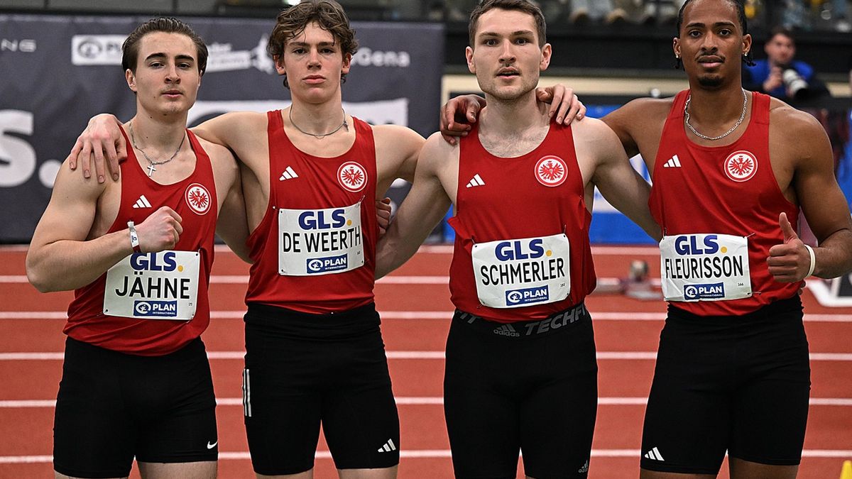 Besonders stark war die Ausbeute von Eintracht Frankfurt, die gleich drei Athleten auf das Podium brachte. Fred Isaac Fleurisson schrieb dabei die bemerkenswerteste Geschichte: Der Mehrkämpfer, der erst Anfang Februar bei den Deutschen Siebenkampf-Meisterschaften aufgefallen war, krönte sein Wochenende mit dem Deutschen Meistertitel über 60 Meter Hürden. In 7,77 Sekunden, damit erneut persönliche Bestleistung, ließ er die Konkurrenz hinter sich und beendete damit eine lange Phase, in der er immer wieder knapp am Podium vorbeischrammte. Smilla Kolbe wiederum zeigte im 800-Meter-Finale der Frauen großen Mut: Sie übernahm früh das Tempo und riss das Feld auseinander, wurde auf den letzten Metern jedoch von Tanja Spill noch abgefangen. Mit Silber in 2:03,29 Minuten durfte die Frankfurterin dennoch zufrieden sein. Komplettiert wurde das Eintracht-Podium von Marvin Heinrich, der sich im 1.500-Meter-Finale der Männer trotz einer hartnäckigen Erkältung die Bronzemedaille in 3:41,46 Minuten erkämpfte.
