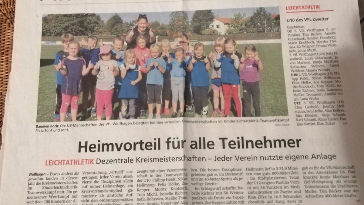 Nebenstehend finden sich einige Bilder von den Wettkampftagen, die Medaille und Urkunde, ein Zeitungsbericht sowie die Anleitung für den Bewegungswürfel. Hier der Link zum Video der dezentralen Kreismeisterschaften. Weitere Informationen zum VfL Wolfhagen können auf der Vereinshomepage nachgelesen werden.