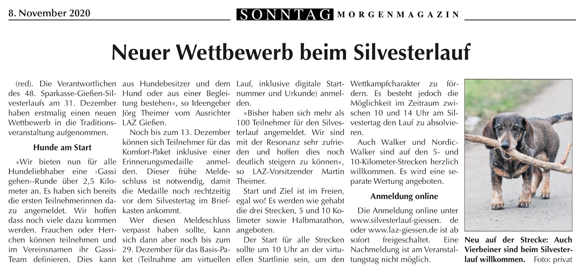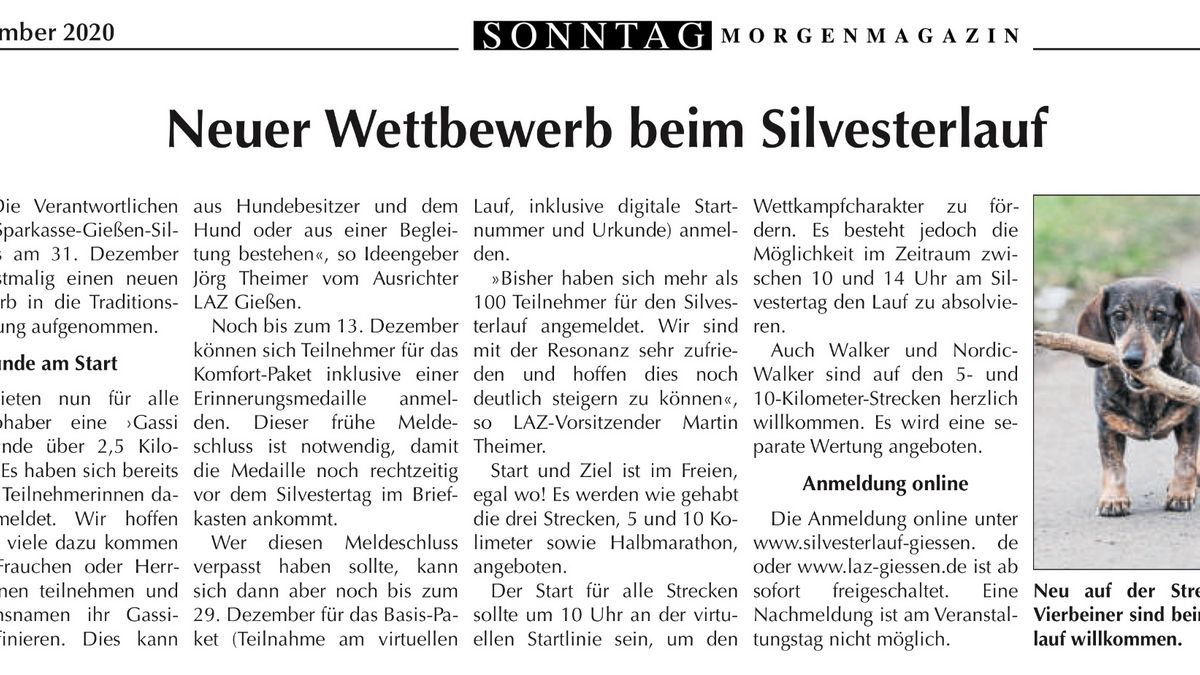 Bei allen positiven Aspekten wollte es Theimer dennoch nicht versäumen darauf hinzuweisen, dass es bei einem solchen Format, auf Grund der unterschiedlichen Streckenprofile, keine echte Wettbewerbsgleichheit geben kann. Diese soll es am besten am Ende diesen Jahres wieder geben, wenn dann der 49. Silvesterlauf des LAZ Gießen stattfinden soll. „Vermutlich wird es eine Hybrid-Veranstaltung geben“, lässt Theimer durchblicken. „Ein gemeinschaftlicher Lauf mit 800 oder 900 Teilnehmern erscheint uns in der jetzigen Zeit unrealistisch. Vermutlich wird es eine Begrenzung geben. Also planen wir zum normalen Lauf zusätzlich wieder eine virtuelle Variante.“
