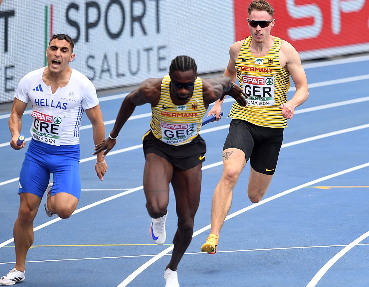 Bei der Männer-Staffel war Kevin Kranz vom Sprintteam Wetzlar als Startläufer mit an Bord. Dieser erledigte seine Aufgabe, die Staffel gut durch die erste Kurve mit einem abschließenden sicheren Wechsel zu bekommen, gut. Leider gelangen die nachfolgenden Wechsel nicht reibungslos, um am Ende vorne mitzusprinten. Als fünfte Staffel in ihrem Vorlauf mussten die Deutschen auf die Zeit schauen, da es noch zwei Plätze für Zeitschnellste gibt. Da der 2. Lauf jedoch circa eine halbe Sekunde insgesamt langsamer war, wurden die beiden Finaltickets für die Zeitschnellsten nur innerhalb des ersten Laufes vergeben. Überraschenderweise ereilte die jamaikanische Staffel das gleiche Leid wie die deutsche Staffel. Die Jamaikaner hatten ebenfalls mit Problemen zu kämpfen und verpassten in der Folge den Finaleinzug.